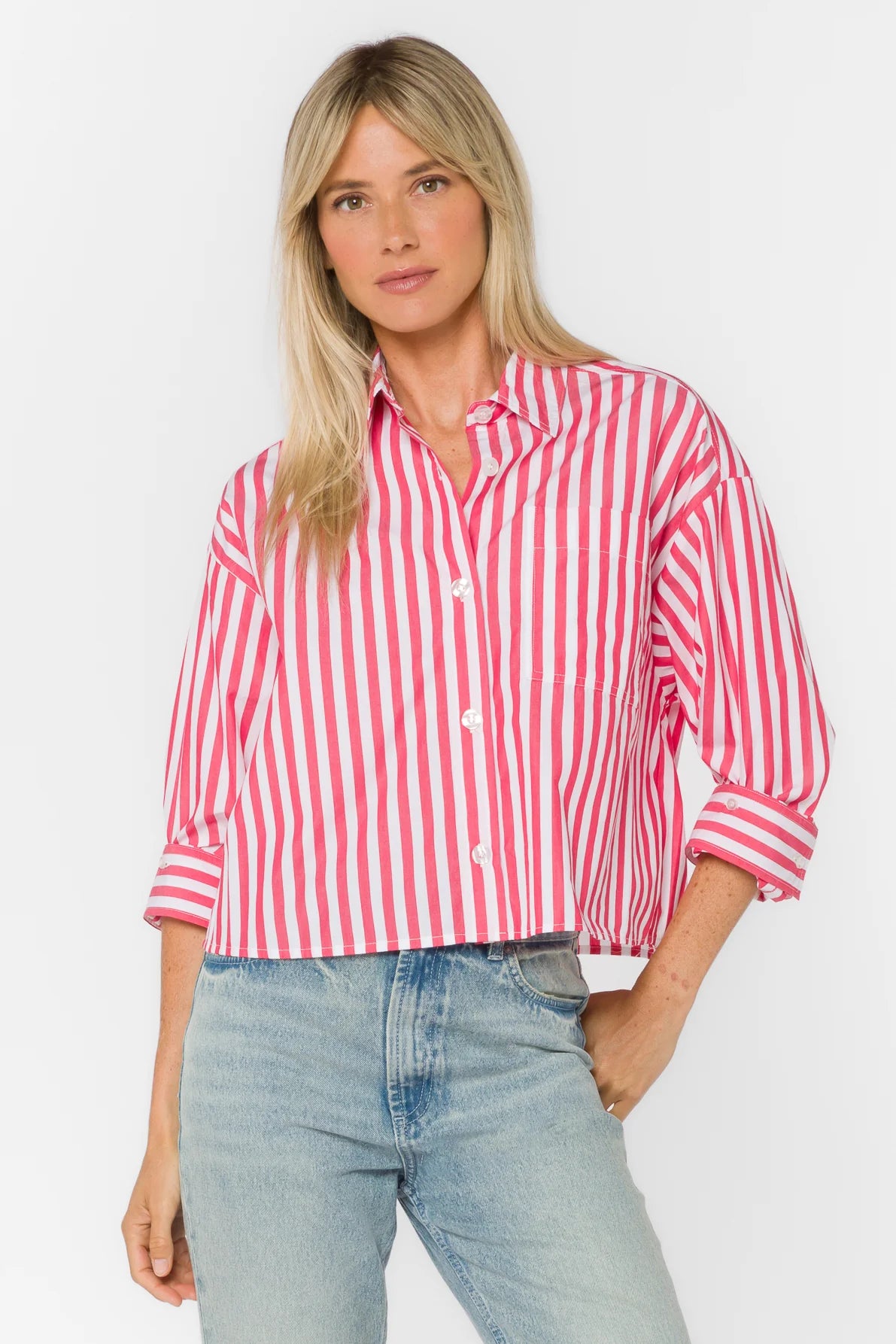 Raspberry Wine Stormi Stripe Button Up